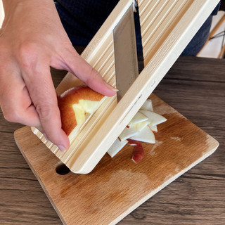 2.リンゴから芯を取り除き、スライサーまたはスライサーアタッチメント付きのフードプロセッサーを使用して、リンゴをできるだけ紙のように薄くスライスします。 リンゴが薄いほど折りたたみやすくなり、巻き付けたときに壊れないようになります。